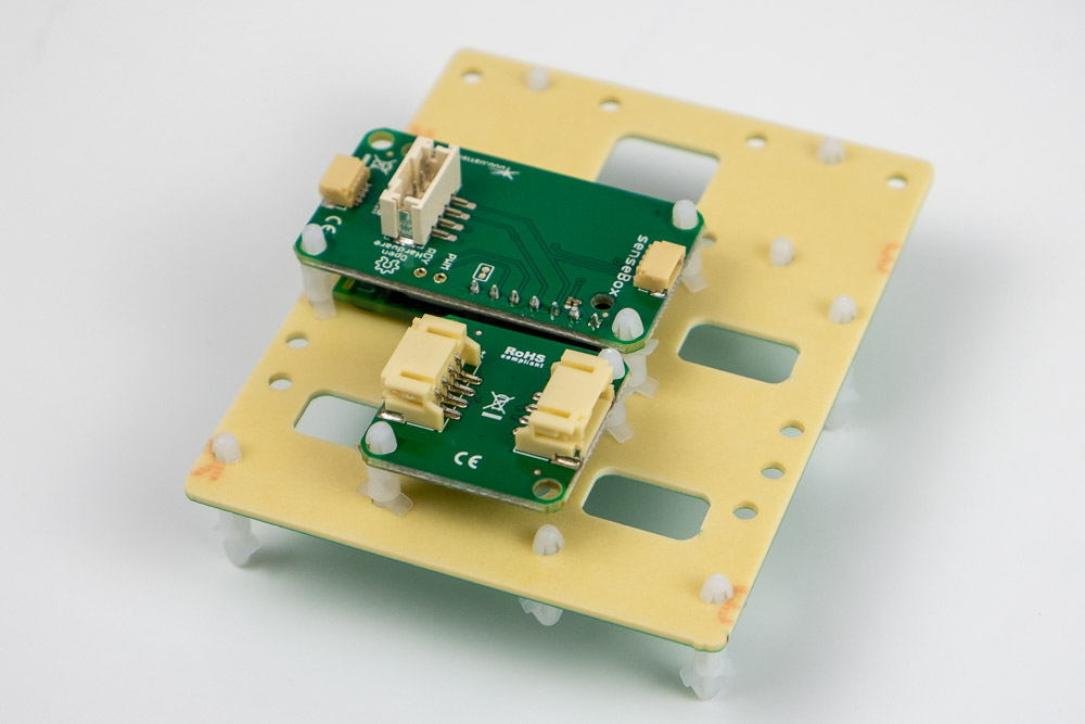 Auf die Unterseite werden jetzt der CO2 Sensor und die RGB-LED eingehängt: