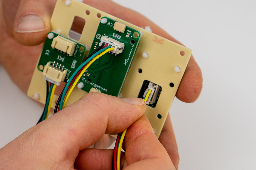 Now insert a connection cable for the RGB LED into one of the digital ports and two connection cables for the display and CO2 sensor into one of the three I2C slots:
